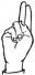 На ћирилици написано МИЉАНА КЛИНЦОВ састоји се из 13 слова [?]. Исписано ћириличном једноручном азбуком за глувонеме: